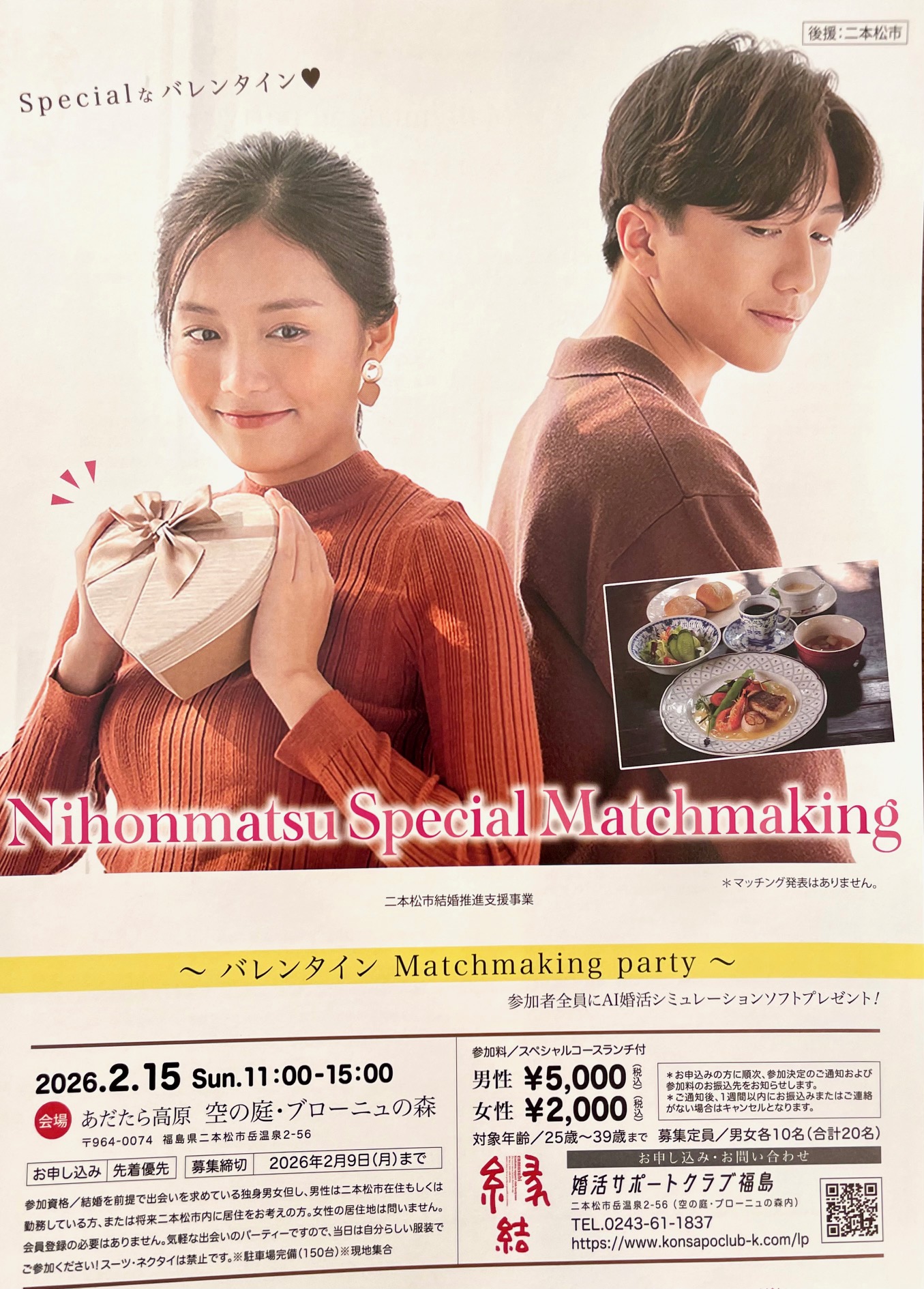 男性は二本松市在住、在勤、または将来二本松に移住可能な方、女性の居住地は問いません。