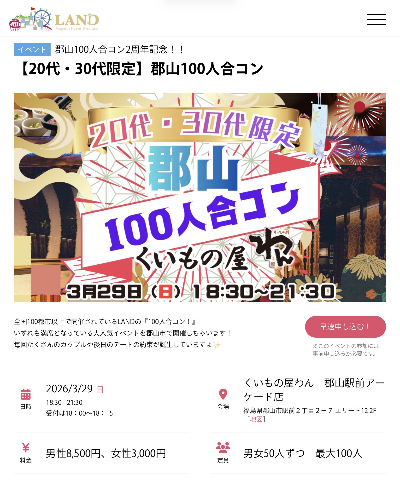 郡山 100人合コン (20〜39歳限定)